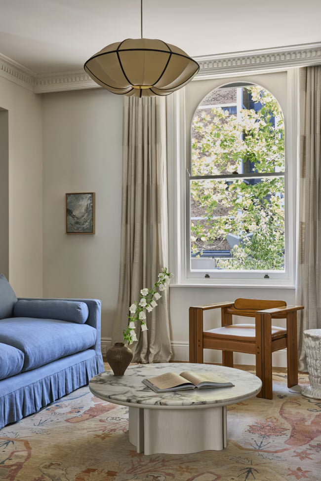 To honour the building's 100-year-old architectural heritage, the team reinstated original details like ornate cornices and traditional parquetry flooring, while echoing the neighbourhood's Art Deco roots through fluid, arched openings and windows.